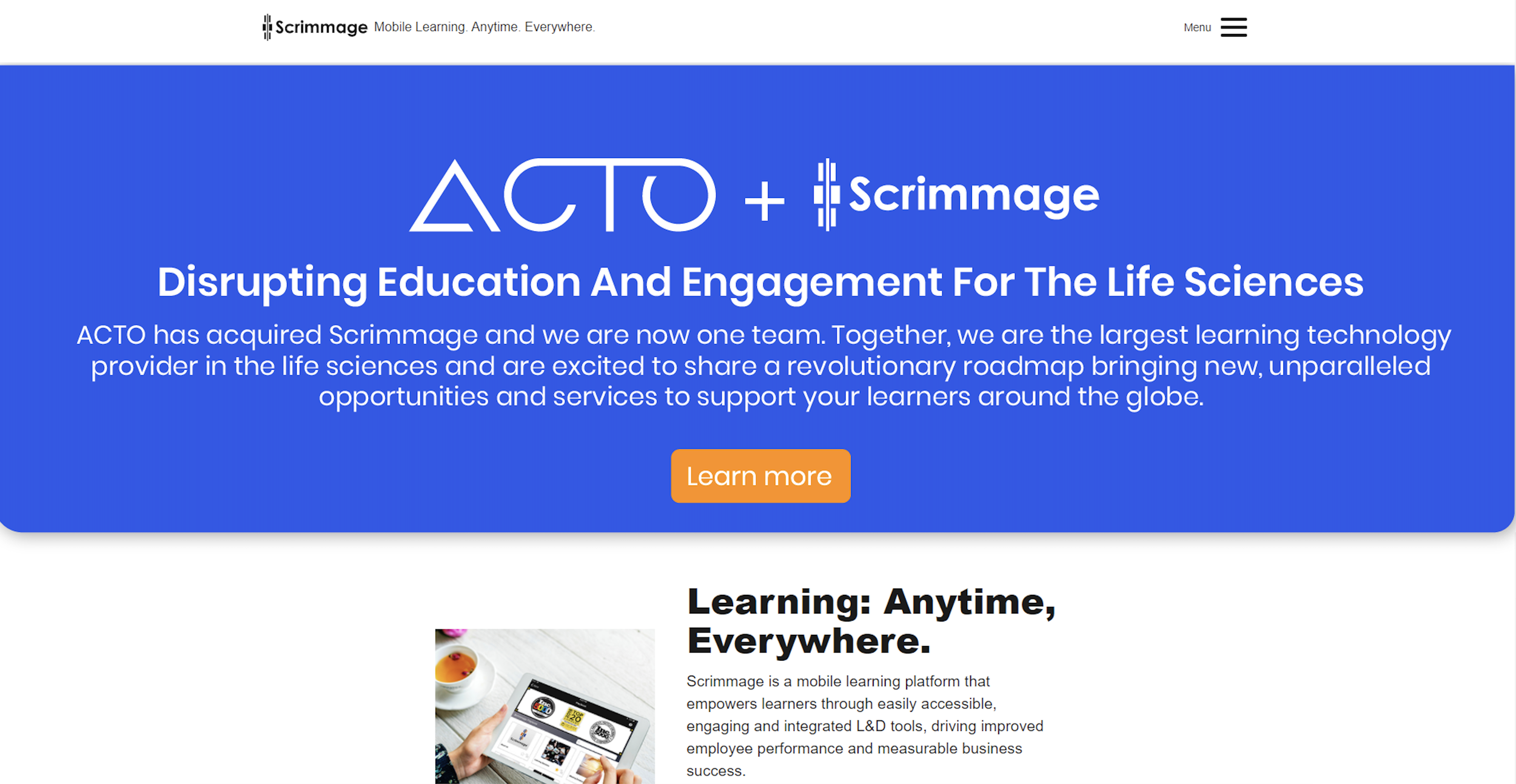 With the acquisition of my company, both leadership teams tapped me to devise, lead, and execute a multi-prong communications plan for my company, Scrimmage, and the acquiring firm, ACTO.